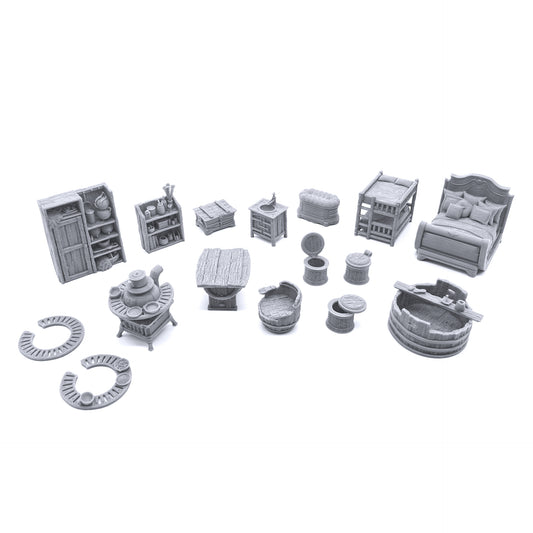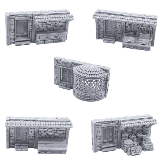 A vast collection of intricate terrain pieces for medieval, historical, and futuristic settings, highly detailed natural landforms, small bits and accessories for tabletop RPGs and wargames.