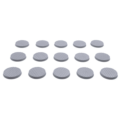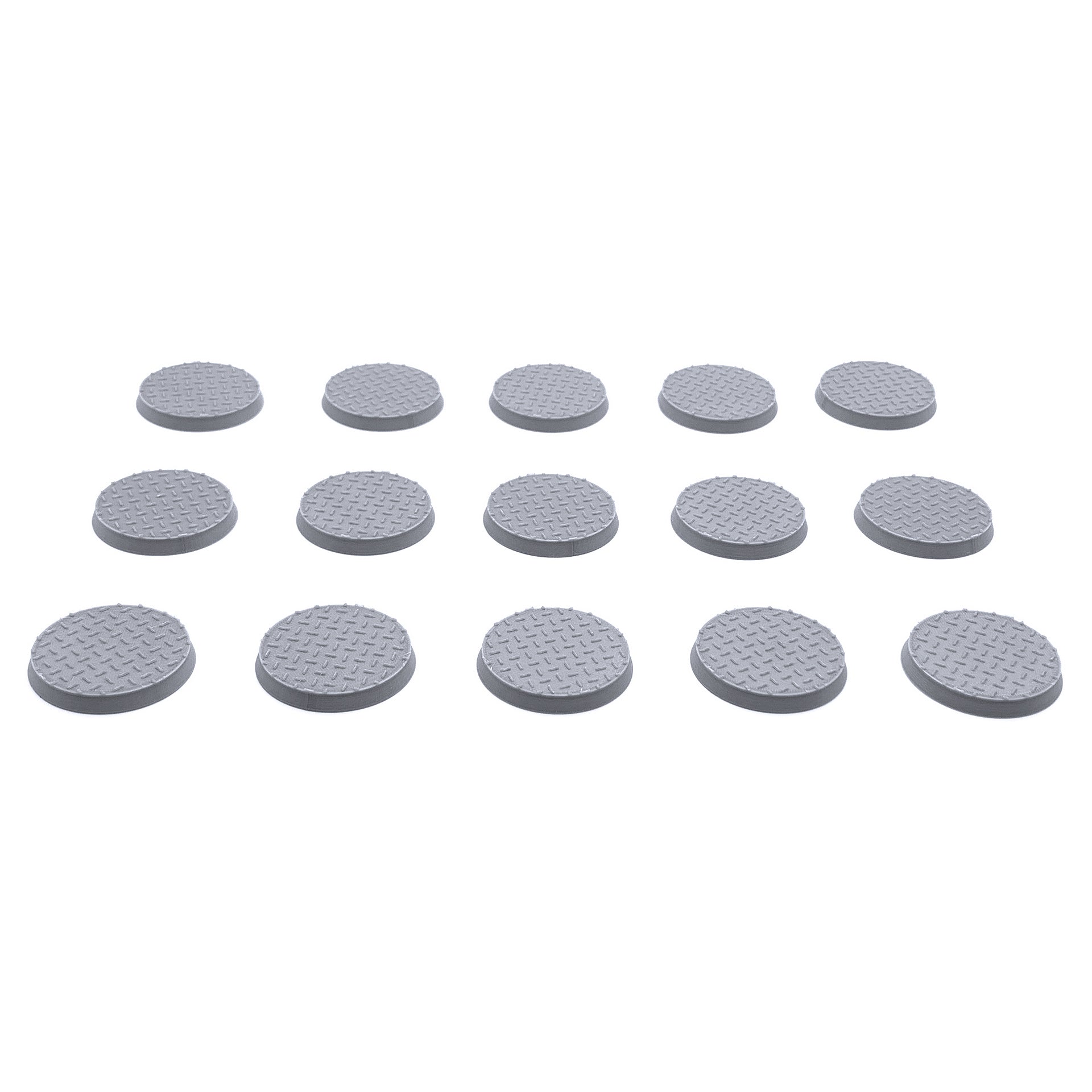 - 32mm Tread Plate Bases (15pcs); 32 x 32 x 5mm = 1.3 x 1.3 x 0.2"