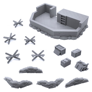 - Package includes 14 various defensive barriers, bits, and military stockpiles.