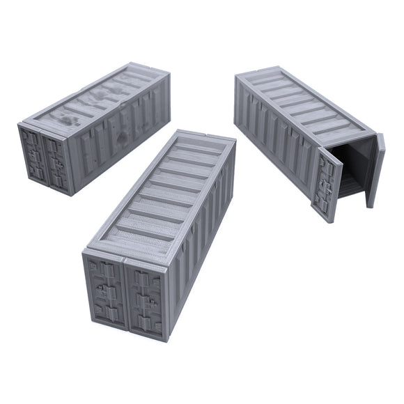 - Package includes 3 freight shipping containers.